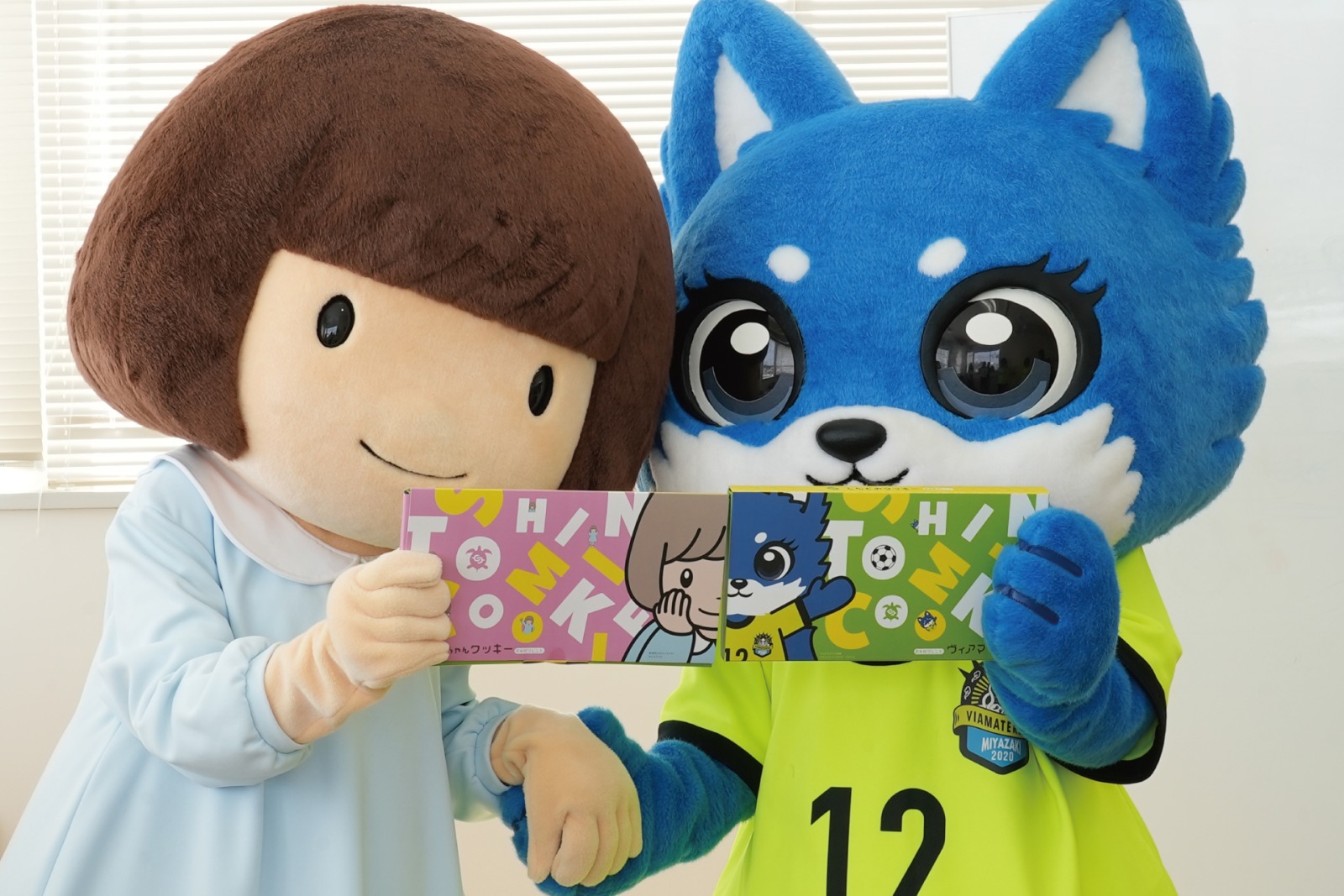 ヴィアマテラス宮崎公式キャラクター「てんてん」、新富町公式キャラクター「おとみちゃん」とのコラボレーション。地元素材にこだわったクッキーでおもてなしの心を贈ります
