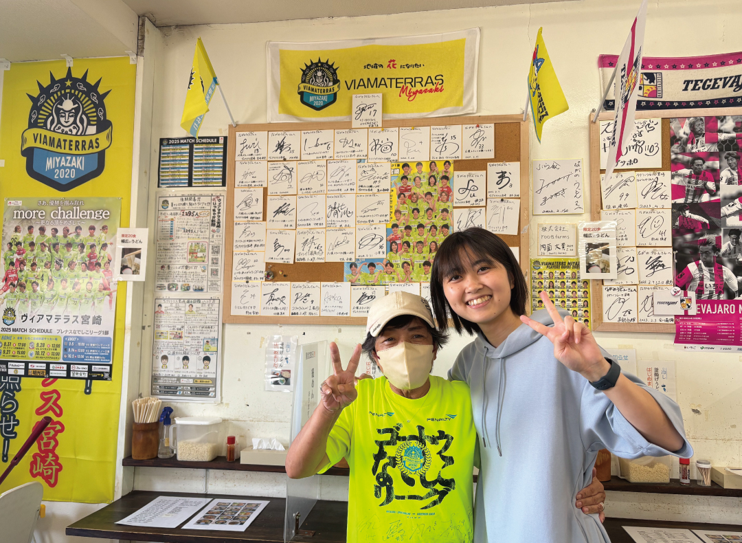 卒論では、いま新富町で活躍する、なでしこリーグ1部の女子サッカークラブ「ヴィアマテラス宮崎」を調査。1週間という長めの滞在の中で、多くの町民と出会い、たくさんの思いに触れることができたようです。