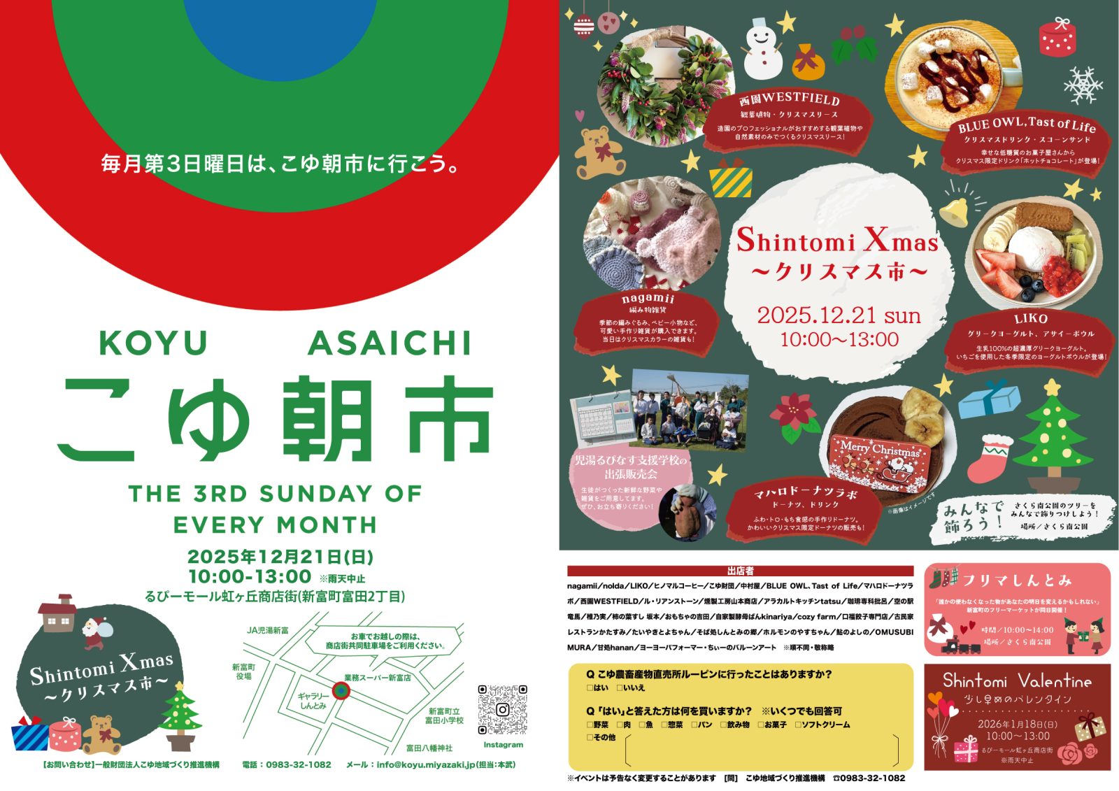 ツリーの飾り付けや毎年恒例「児湯るぴなす支援学校」の出張販売、フリマしんとみとのコラボも!